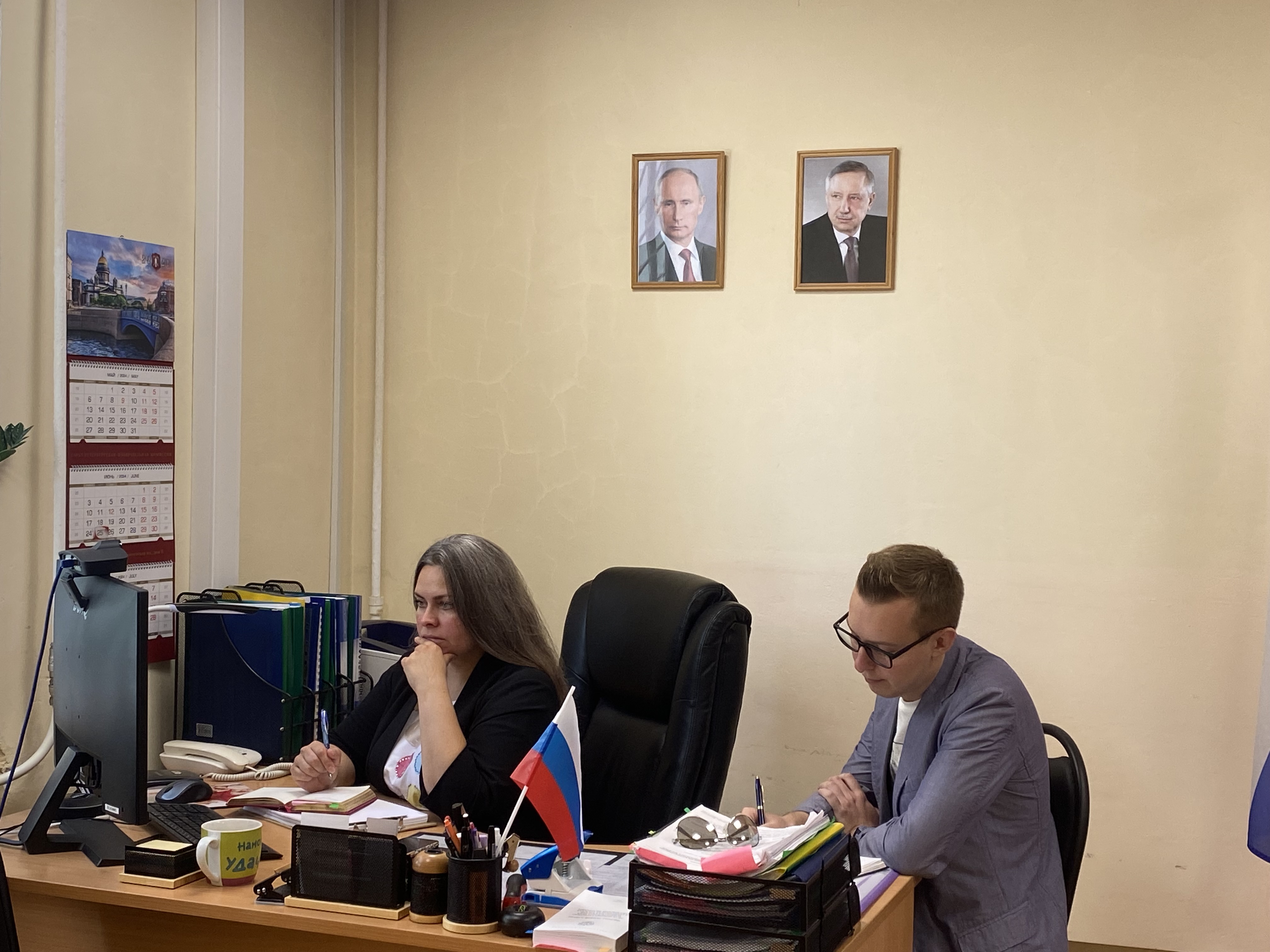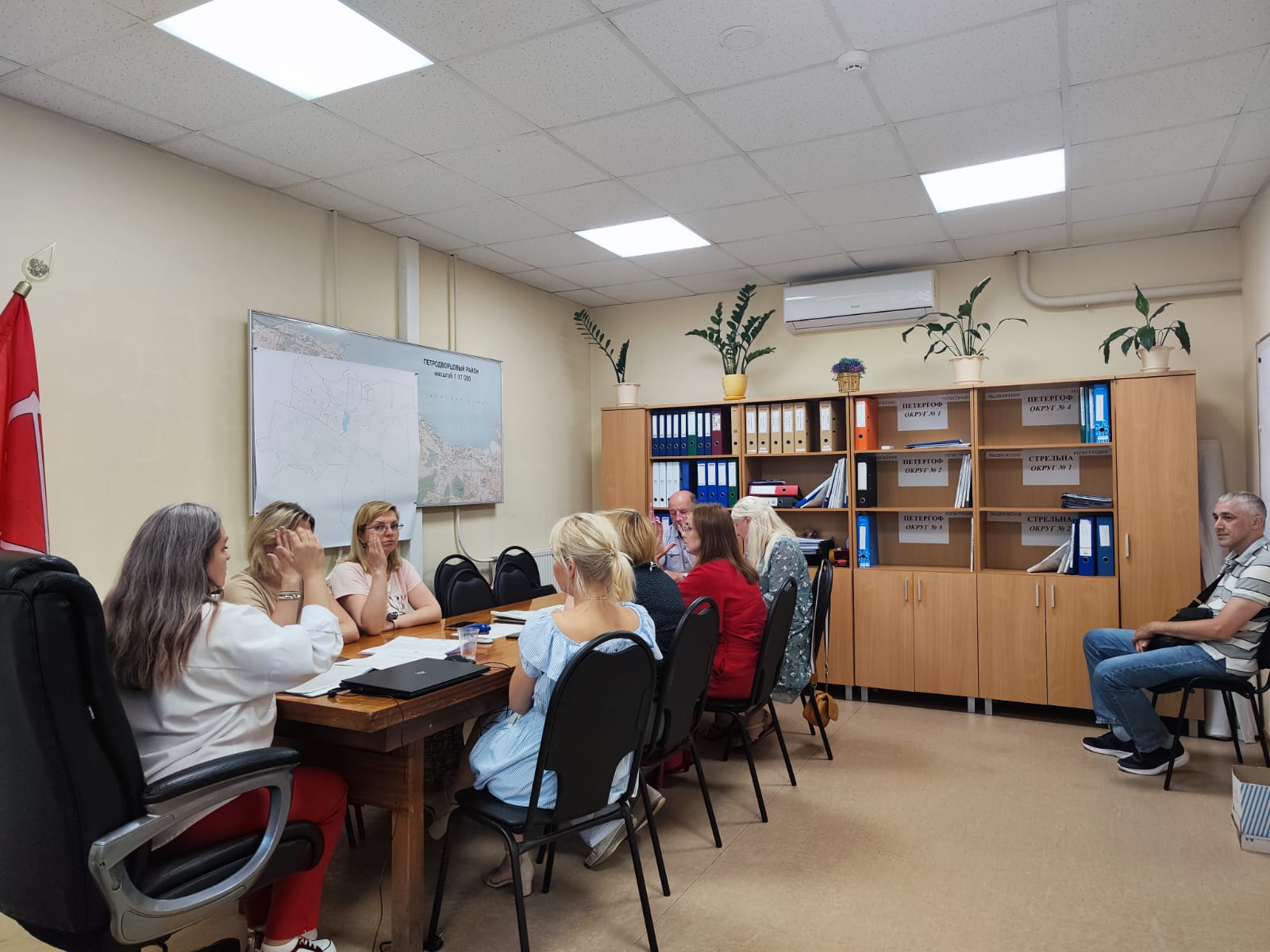 ![]() | 24 июня 2016 года Состоялось рабочее совещание председателя ТИК № 8 с начальником отдела организационной работы и взаимодействия с органами местного самоуправления Администрации Петродворцового района Санкт-Петербурга. |
