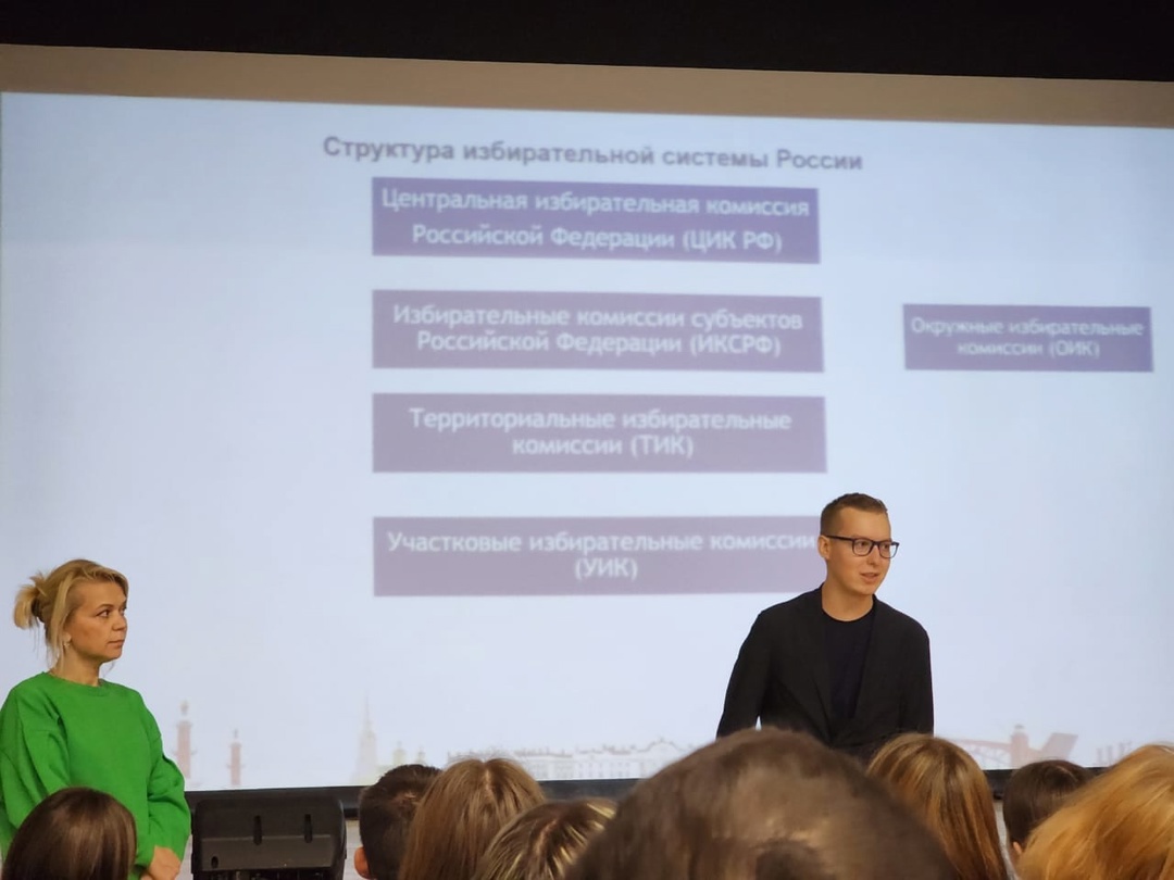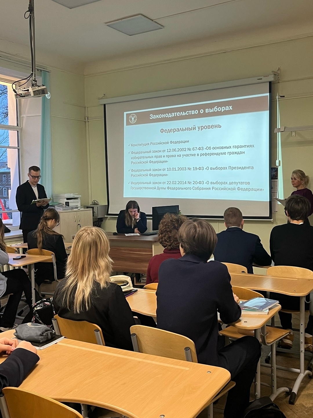 Территориальные избирательные комиссии Петродворцового района провели обучающий семинар «Голосовать просто» для десятиклассников в Петергофской гимназии. На первом уроке состоялась теоретическая часть мероприятия, где учащиеся узнали, что такое избирательное право и избирательный процесс. Второй урок был построен по принципу практического занятия: вместе с учениками мы разобрали ситуационные задачи, написали избирательный диктант, а также разобрались, какие бывают виды бюллетеней. Благодарим всех участников мероприятия за проявленный интерес! |