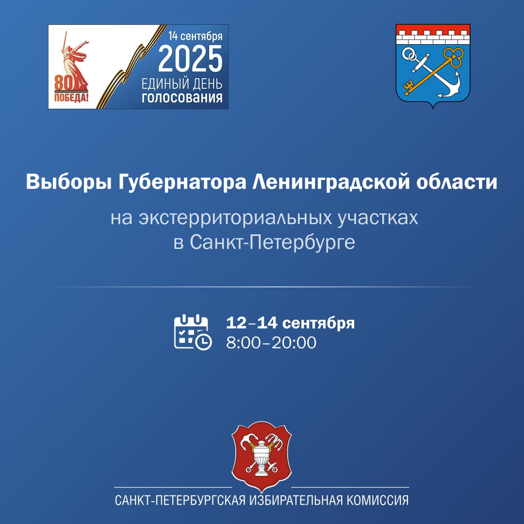 В Санкт-Петербурге начали работу экстерриториальные избирательные участки на выборах Губернатора Ленинградской области Жители Ленинградской области, находящиеся в Санкт-Петербурге, смогут реализовать свое избирательное право на 18-ти экстерриториальных избирательных участках. Голосование пройдет в течение трёх дней — с 12 по 14 сентября 2025 года. Все участки будут открыты ежедневно с 8:00 до 20:00. На территории Петродворцового района избиратели, обладающие активным избирательным правом, смогут проголосовать на экстерриториальном избирательном участке № 1041. Участок располагается по адресу: г. Ломоносов, Дворцовый пр., 12/8 (Здание Ломоносовского городского дома культуры). |